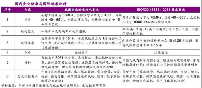 目前我國已經(jīng)實(shí)施能夠適用于35MPa和70MPa的高壓儲(chǔ)氫瓶的相應(yīng)標(biāo)準(zhǔn)GB/T35544-2017《車用壓縮氫氣鋁合金內(nèi)膽碳纖維全纏繞氣瓶》。