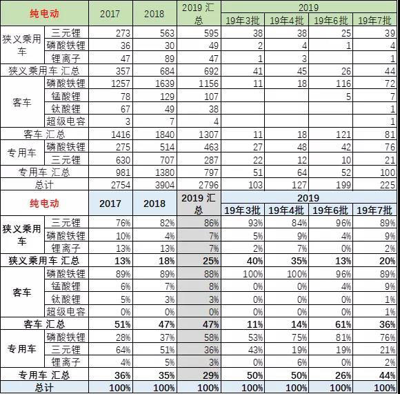 2019年的第7批目錄也是面對新補(bǔ)貼階段的市場要求,目錄體系日益完善,其中分為三類車型分別對應(yīng)滿足2019年補(bǔ)貼技術(shù)標(biāo)準(zhǔn)、2018年補(bǔ)貼技術(shù)標(biāo)準(zhǔn)和不滿足補(bǔ)貼技術(shù)標(biāo)準(zhǔn)的車型。