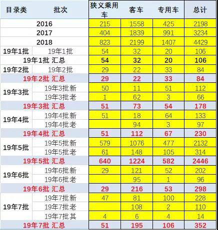 19年第6目錄的數(shù)量202款相對第5批的較多,而且客車和專用車較多。
