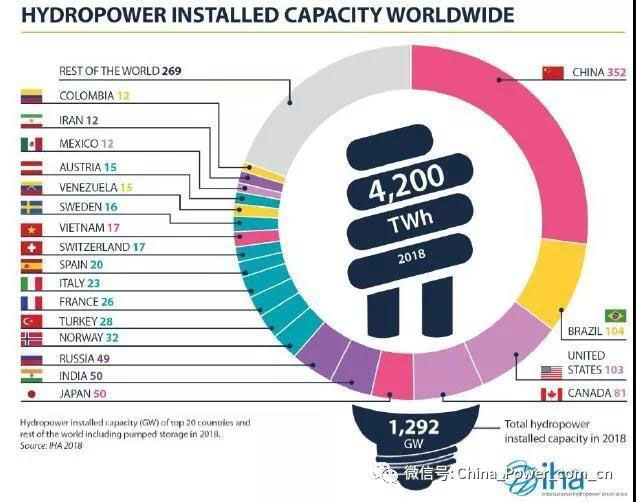 根據(jù)《International Hydropower Association,iha(國際水力發(fā)電協(xié)會)》2019年的報道,2018年水力發(fā)電總裝機容量為1292GW,中國為352GW,占總量的352/1292=27.2%。