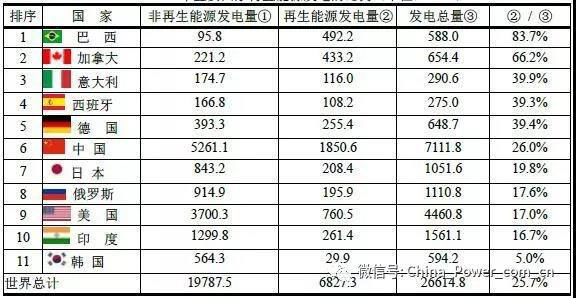 根據(jù)BP 2019年的報告,2018年全球再生能源發(fā)電占全球總發(fā)電量的平均數(shù)為25.7%。超過平均數(shù)的國家有個特點:水力發(fā)電特別多的國家如巴西、加拿大;利用風力發(fā)電和光伏特別多的國家如意大利、西班牙、德國等,而富產(chǎn)化石燃料的國家如美國、俄羅斯就比較低。