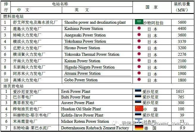 表中油頁巖電站所使用的燃料不是頁巖油,而是油頁巖。
