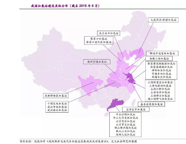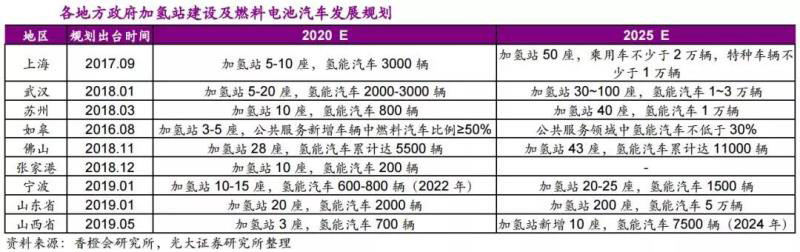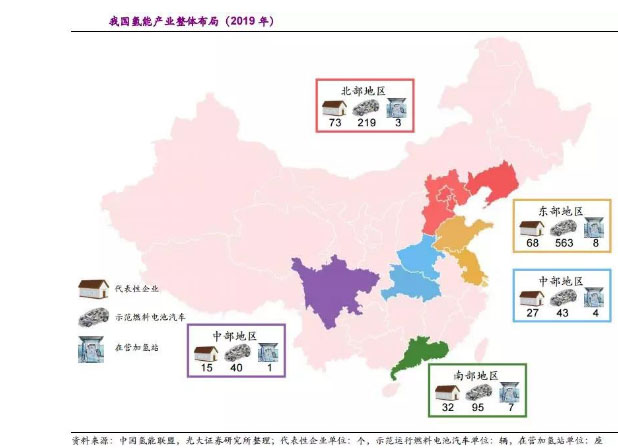 南部地區(qū)主要以廣東佛山和云浮為首,依托燃料電池及燃料電池汽車的大規(guī)模示范,該地氫能產(chǎn)業(yè)鏈逐步完善,共有規(guī)模以上企業(yè)32家,示范運行燃料電池車95量,加氫站7座,計劃到2020年建成40座。