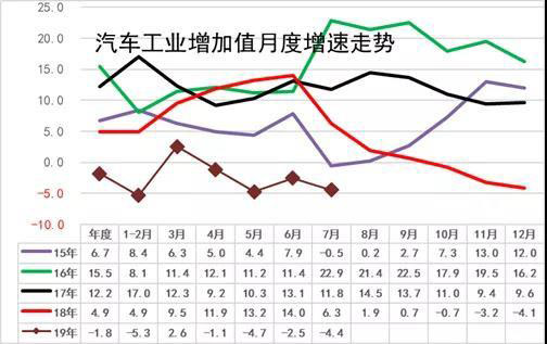 19年1-7月的汽車增加值-1.8%,仍處近期低位。18年增5%.。19年1-7月汽車業(yè)增加值是低于于制造業(yè)增加值平均水平,為制造業(yè)穩(wěn)增長貢獻不大。