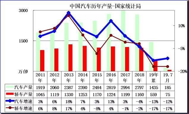 19年1-7月的汽車產(chǎn)量1435萬臺,增速-13%,較18年的-4%偏低的行業(yè)增速較差,這是是樓市火爆、消費不強因素下的汽車低迷。