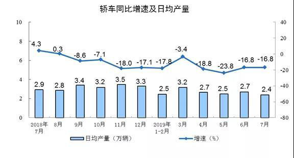 7月份日均轎車生產(chǎn)2.4萬臺,同比下降17%。轎車去年7月日均2.8萬臺。今年由于產(chǎn)品不足和市場低迷壓力, 7月生產(chǎn)走弱明顯。但沒有進一步嚴峻下降。