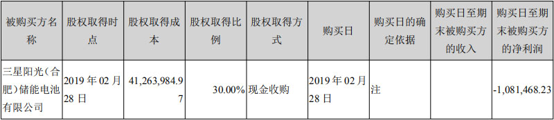 今年2月,陽光電源股份有限公司與三星SDI株式會社簽訂股權(quán)轉(zhuǎn)讓協(xié)議,以約4126萬元購買三星SDI株式持有的三星陽光(合肥)儲能電池有限公司30.00%的股權(quán)。