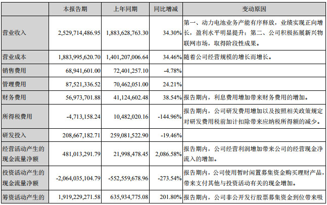 中國儲能網(wǎng)訊:8月15日,億緯鋰能發(fā)布2019年半年度報告,報告顯示公司上半年實現(xiàn)營業(yè)收入25.30億元,同比增長34.30%,凈利潤5.01億元,同比增長215.23%。億緯鋰能表示報告期內(nèi),動力電池、儲能電池成為公司增量最大的業(yè)務(wù),帶動了整體業(yè)務(wù)的增長。隨著產(chǎn)能的逐步釋放,公司在磷酸鐵鋰電池的市場地位進一步提升。