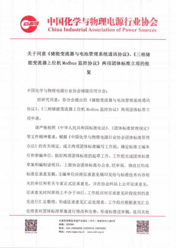 為深入貫徹《標準化法》《團體標準管理規(guī)定》等文件精神,加快建立和完善與國家標準、行業(yè)標準相協(xié)調(diào)的儲能團體標準體系,根據(jù)《中國化學與物理電源行業(yè)協(xié)會團體標準管理辦法》,經(jīng)部分單位倡議,我會分別就《儲能變流器與電池管理系統(tǒng)通訊協(xié)議》、《三相儲能變流器上位機Modbus監(jiān)控協(xié)議》兩項團體標準組織有關專家完成初稿編寫工作。