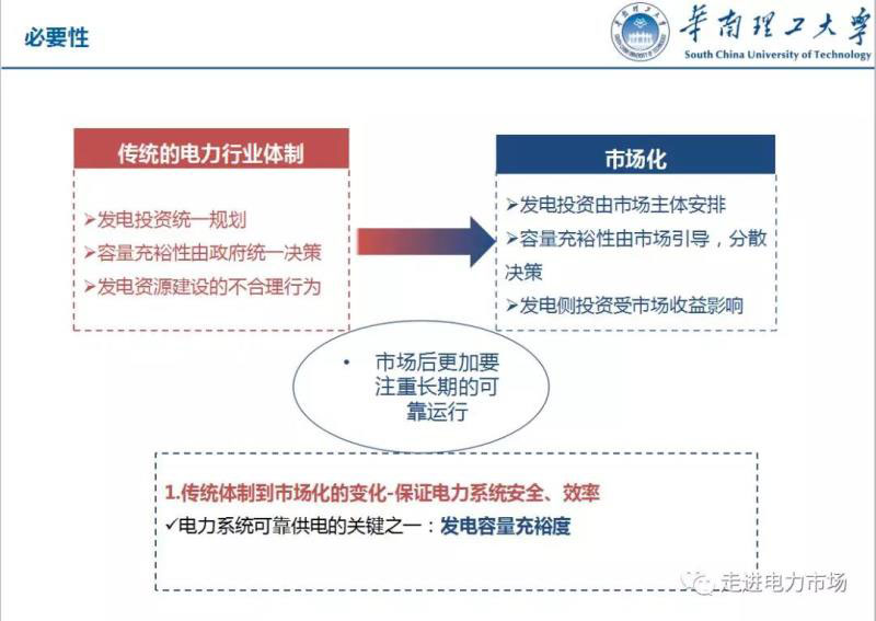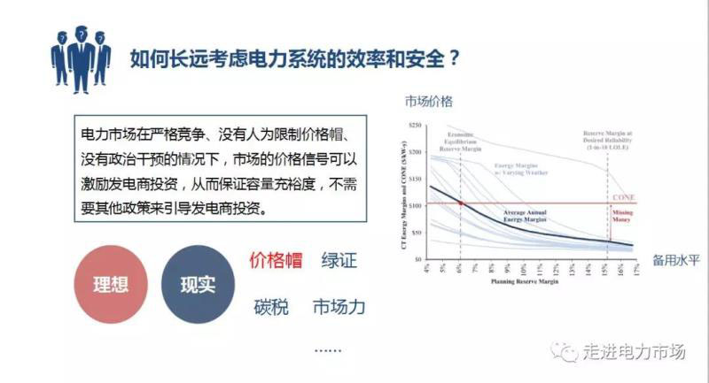 我們?yōu)槭裁从懻撨@個問題?其實是因為建市場后是需要去激勵長期可靠運行,昨天我們也討論過這個問題,大部分用戶將停電損失放到第一位,他們甚至認為節(jié)約一點用電成本對他們來說并不是最主要的關注的問題,更想要的是穩(wěn)定的供電,理想的情況下按照市場來說它是可以通過市場的方式,這只無形的手,去激勵發(fā)電商投資保證供需平衡。