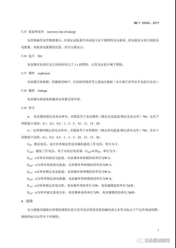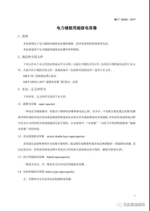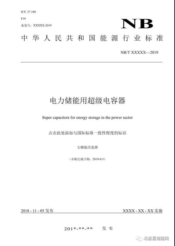 《電力儲(chǔ)能用超級(jí)電容器》能源行業(yè)標(biāo)準(zhǔn)征求意見稿
