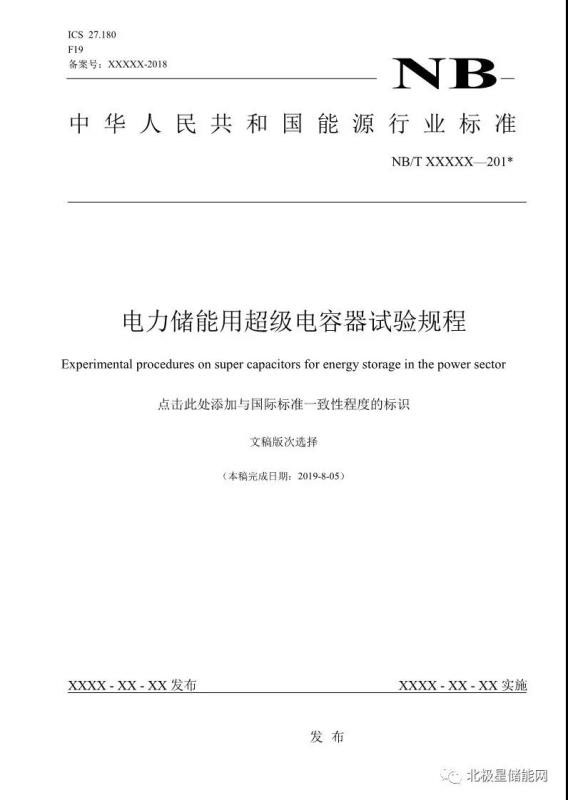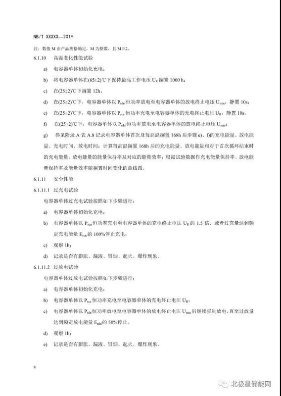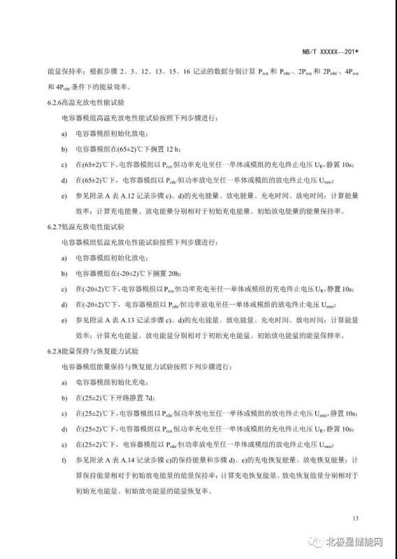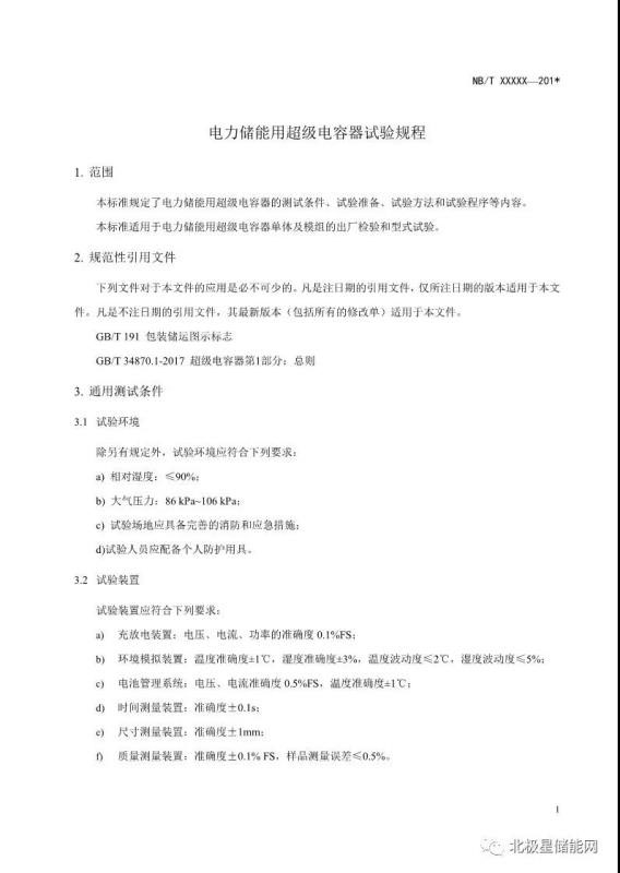 《電力儲能用超級電容器試驗(yàn)規(guī)程》能源行業(yè)標(biāo)準(zhǔn)征求意見稿