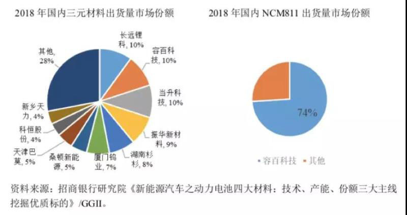2018年容百科技NCM811銷量5926噸,國內(nèi)市場份額達74%。2019上半年容百高鎳三元材料銷量9790噸,同比增加201%。數(shù)據(jù)非常亮眼。