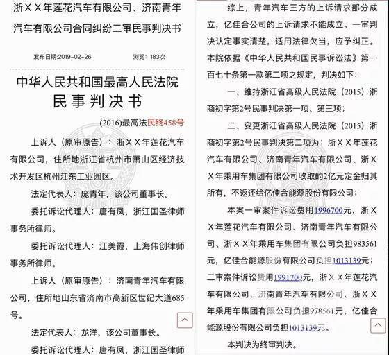 2012年,鄒籍鋒的合伙人起訴青年汽車,認(rèn)為龐青年在簽訂合同前未能及時告知收購事實,存在欺詐行為,要求返還2億定金。2013年,龐青年反訴億佳合,稱因其資金支付不及時,導(dǎo)致收購失敗,要求賠償損失。