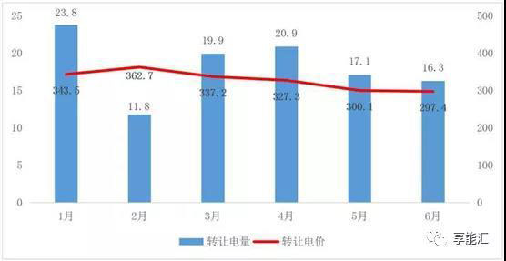 1-6月,共組織6次發(fā)電合同轉讓協(xié)商交易,累計成交電量31.53億千瓦時,平均成交價格270.8厘/千瓦時,主要出讓方為省內(nèi)關停的燃煤機組。