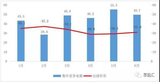 2019年1-6月,共組織6次月度集中競爭交易,累計成交電量272.1億千瓦時,同比增長19.2%,平均價差-32.1厘/千瓦時。