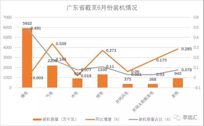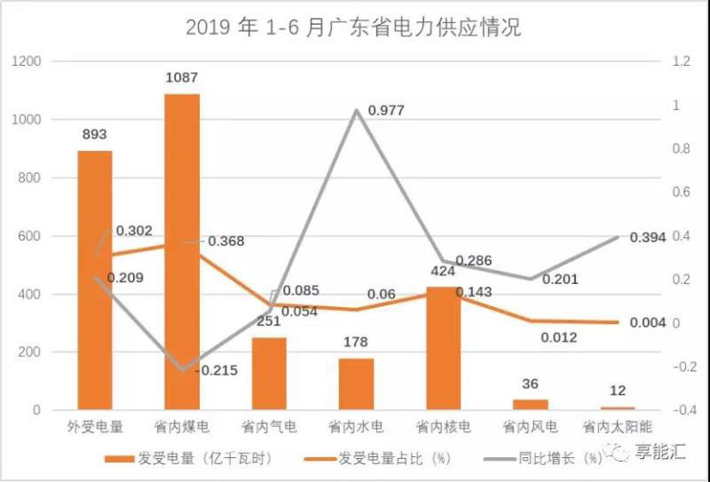 截至2019 年6月底,廣東電網(wǎng)統(tǒng)調(diào)裝機容量1.2億千瓦,同比增長10.3%,其中中調(diào)裝機容量1.0億千瓦,地調(diào)裝機容量0.2億千瓦;全省發(fā)受電量合計2957億千瓦時,同比增長3.2%。