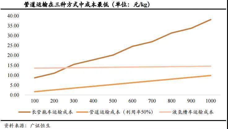氫氣管網(wǎng)相比長管拖車具備成本優(yōu)勢(shì)。