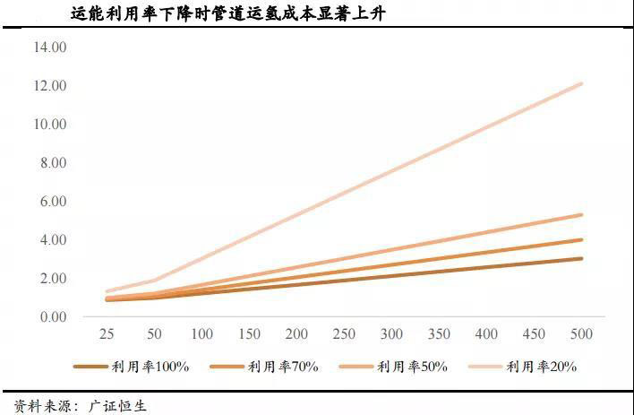 管道運(yùn)氫成本很大程度上受到需求端的影響。
