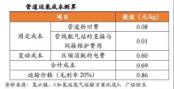根據(jù)以上假設(shè),可測(cè)算出長度25m、年輸送能力10.04萬噸的氫氣管道,運(yùn)氫價(jià)格為0.86元/kg。