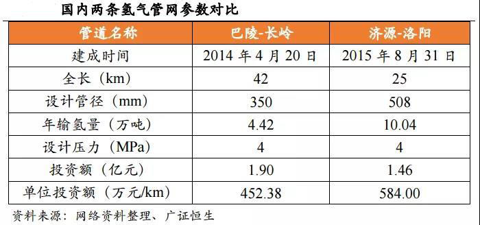 國內(nèi)氫氣管網(wǎng)建設(shè)提速。我國的輸氫管道主要分布在環(huán)渤海灣、長三角等地,目前已知有一定規(guī)模的管道項(xiàng)目有兩個(gè):濟(jì)源-洛陽(25km)及巴陵-長嶺(42km)兩個(gè)。
