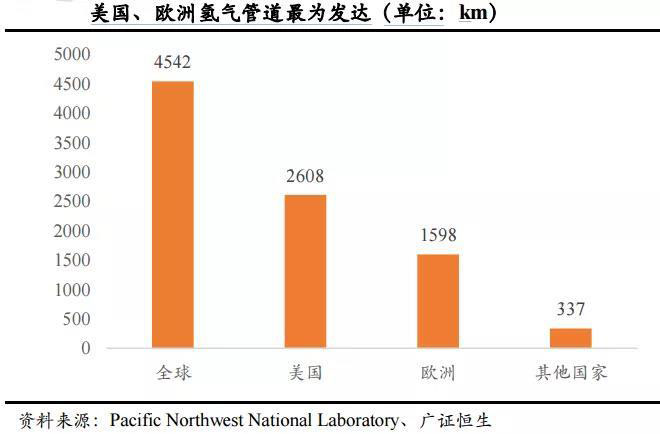 我國布局氫氣管網(wǎng)布局有較大提升空間。美國和歐洲是世界上最早發(fā)展氫氣管網(wǎng)的地區(qū),已有70年歷史。