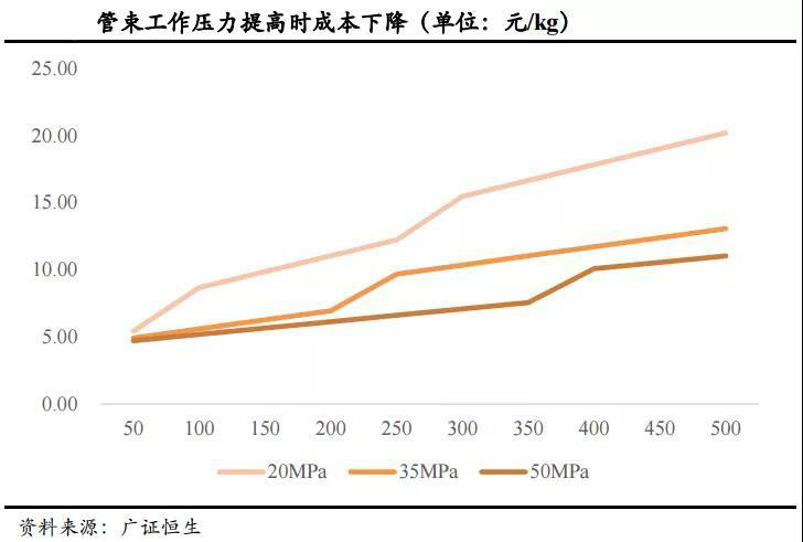 若國內(nèi)放寬對(duì)儲(chǔ)運(yùn)壓力的標(biāo)準(zhǔn),相同容積的管束可以容納更多氫氣,從而降低運(yùn)輸成本。