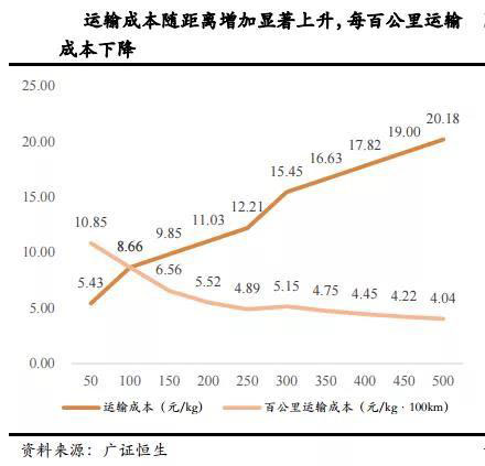 距離500km時(shí)運(yùn)輸成本達(dá)到20.18元/kg。