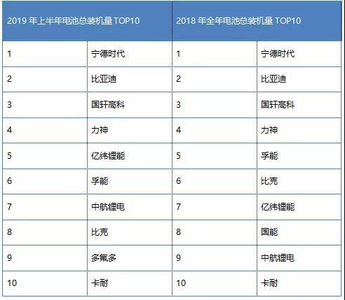 2019年上半年,我國電池總裝機量為30.03GWh。寧德時代以13.85GWh占據(jù)榜首,占市場份額的46.15%,比亞迪和國軒高科則分別以7.36GWh和1.76GWh位列第二第三。
