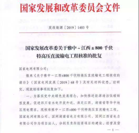 自從雅中直流落點(diǎn)確定為江西南昌后,傳言去年第四季度核準(zhǔn)遲遲無下文。2019年8月23日,國家發(fā)改委核準(zhǔn)批復(fù)雅中-江西±800千伏特高壓直流輸電工程,標(biāo)志著該工程正式進(jìn)入建設(shè)實施階段。