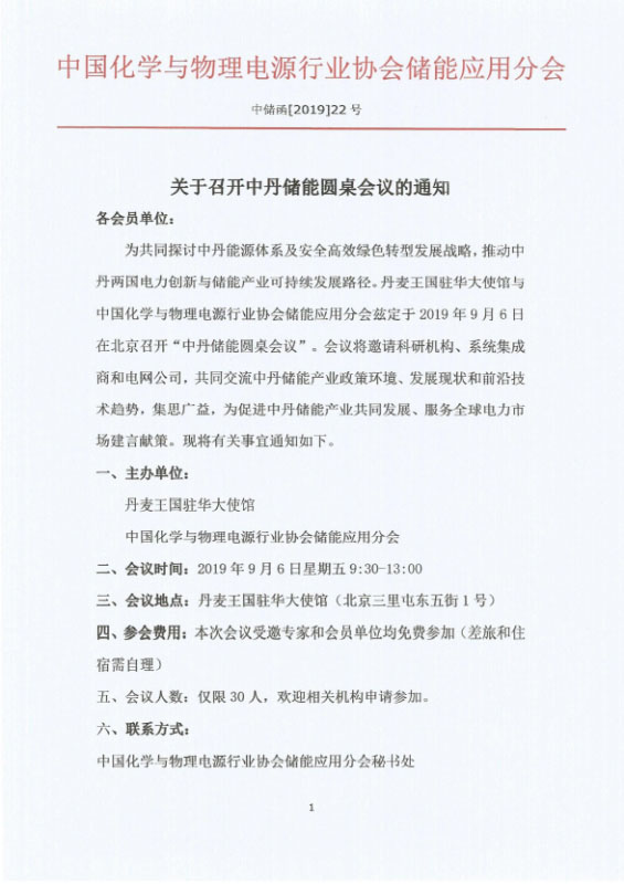 為共同探討中丹能源體系及安全高效綠色轉(zhuǎn)型發(fā)展戰(zhàn)略,推動中丹兩國電力創(chuàng)新與儲能產(chǎn)業(yè)可持續(xù)發(fā)展路徑。丹麥王國駐華大使館與中國化學與物理電源行業(yè)協(xié)會儲能應用分會茲定于2019年9月6日在北京召開“中丹儲能圓桌會議”。會議將邀請科研機構(gòu)、系統(tǒng)集成商和電網(wǎng)公司,共同交流中丹儲能產(chǎn)業(yè)政策環(huán)境、發(fā)展現(xiàn)狀和前沿技術(shù)趨勢,集思廣益,為促進中丹儲能產(chǎn)業(yè)共同發(fā)展、服務全球電力市場建言獻策。