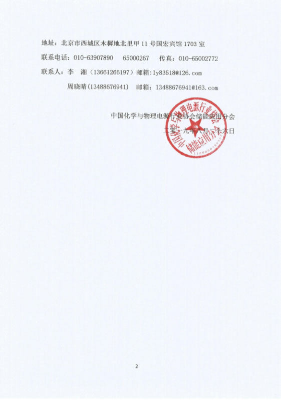 中國化學與物理電源行業(yè)協(xié)會儲能應用分會秘書處