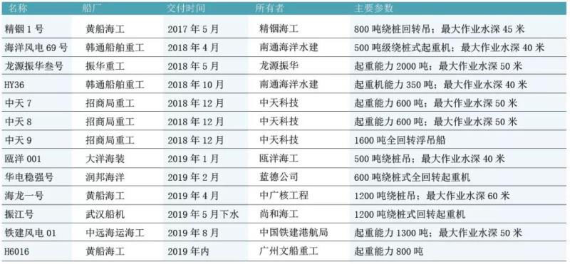 此前,國(guó)內(nèi)海上風(fēng)電項(xiàng)目的基礎(chǔ)施工和吊裝主要由中交三航局、龍?jiān)凑袢A和南通海洋水建承擔(dān),這三家企業(yè)施工經(jīng)驗(yàn)豐富并且擁有專業(yè)的船\平臺(tái)。