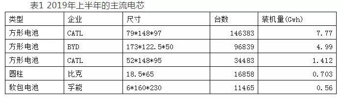 1)2019年上半年主要的電芯規(guī)格