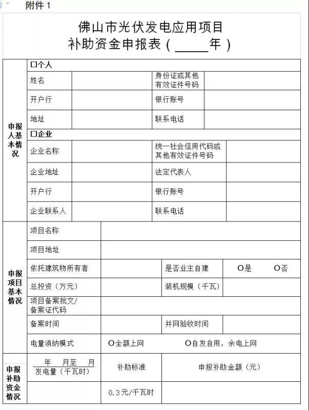 1.《佛山市光伏發(fā)電應(yīng)用項目補(bǔ)助資金申報表( 年)》;