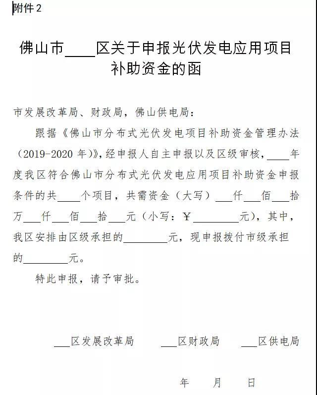2.佛山市 區(qū)關(guān)于申報光伏發(fā)電應(yīng)用項目補(bǔ)助資金的函