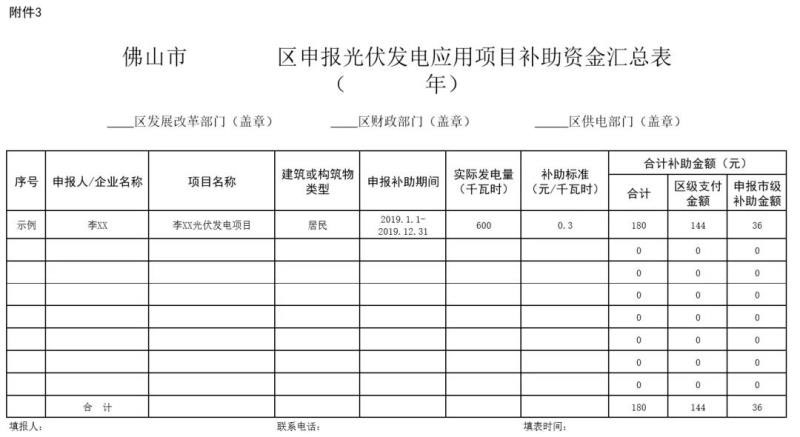3.佛山市 區(qū)申報分布式光伏發(fā)電應(yīng)用項目補(bǔ)助資金匯總表( 年)