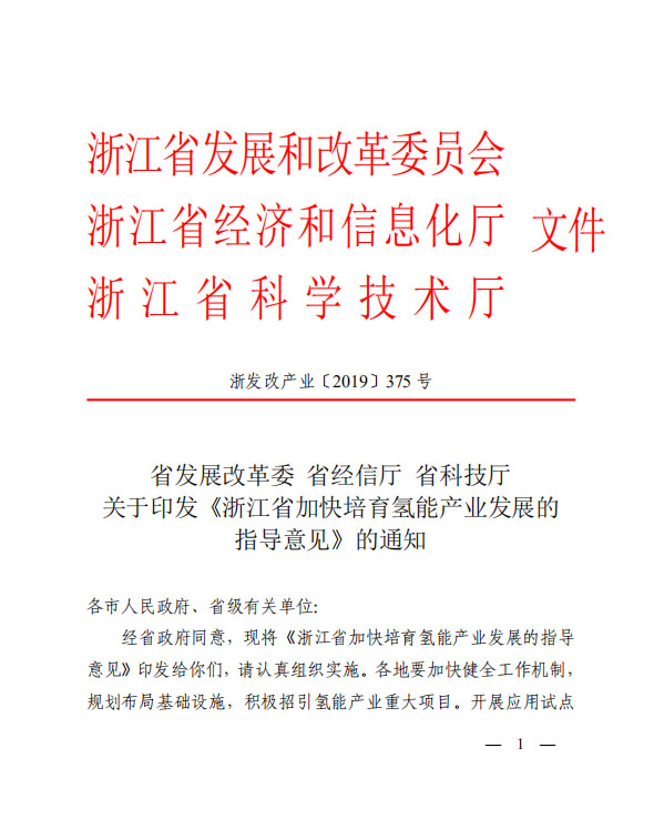 中國儲能網(wǎng)訊:近日,浙江省發(fā)展改革委、省經(jīng)信廳、省科技廳聯(lián)合印發(fā)《浙江省加快培育氫能產業(yè)發(fā)展的指導意見》(以下簡稱:意見)通知,該意見指出,開發(fā)和利用氫能是當前全球產業(yè)創(chuàng)新和能源轉型的重大戰(zhàn)略方向。為搶抓氫能產業(yè)發(fā)展機遇,加快氫能領域技術創(chuàng)新,增強經(jīng)濟社會發(fā)展新動能,特制定本意見。原文如下: