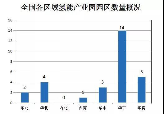 從區(qū)域分布來看,華東地區(qū)氫能產(chǎn)業(yè)園區(qū)數(shù)量最多,共有14個;華中地區(qū)有3個氫能產(chǎn)業(yè)園區(qū);華南地區(qū)5個氫能產(chǎn)業(yè)園區(qū);華北地區(qū)4個氫能產(chǎn)業(yè)園區(qū);東北地區(qū)2個氫能產(chǎn)業(yè)園區(qū);西南地區(qū)1個產(chǎn)業(yè)園區(qū);西北地區(qū)目前尚未出現(xiàn)氫能產(chǎn)業(yè)園區(qū)。其中又以江蘇、浙江、廣東、上海最為積極。天津濱海新區(qū)氫燃料新能源汽車產(chǎn)業(yè)園尚處于規(guī)劃階段,其余各個地區(qū)的氫能產(chǎn)業(yè)園區(qū)皆有相關(guān)產(chǎn)業(yè)鏈企業(yè)入駐。