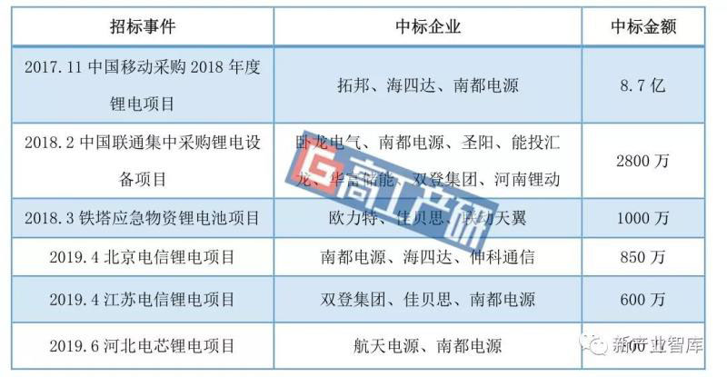 中國(guó)通訊后備鋰電池主要中標(biāo)案例