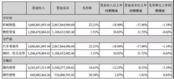其中,占總營業(yè)收入超7成的汽車零部件業(yè)務板塊在今年上半年共營收36.87億元,同比下滑18.9%,毛利潤跌至22.21%,同比微降1.34%。