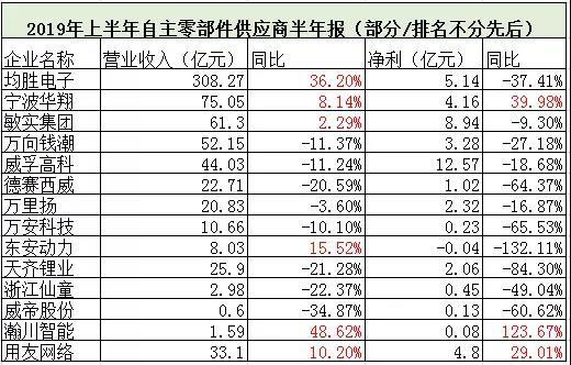 截至目前,已經發(fā)布2019年上半年財報的自主零部件上市公司中,凈利潤下跌幾乎是大概率事件。以下是我們選取14家國內零部件上市公司財報情況,其中近6成國內零部件供應商營收下滑,近8成零部件供應商凈利下滑。產業(yè)進入“微利時代”。