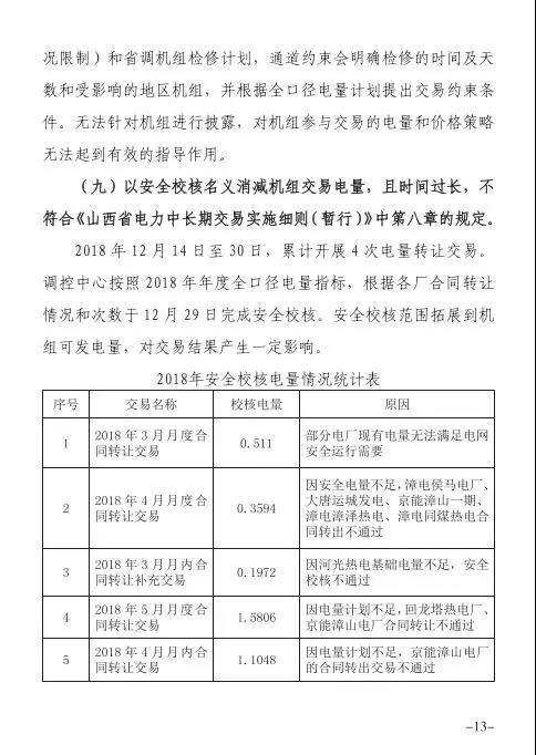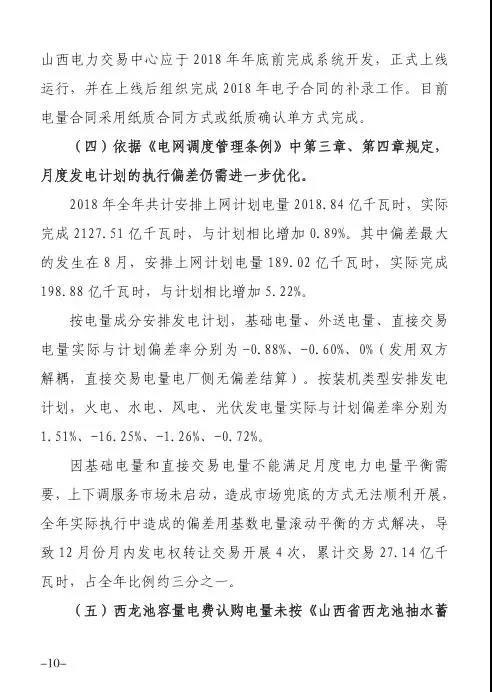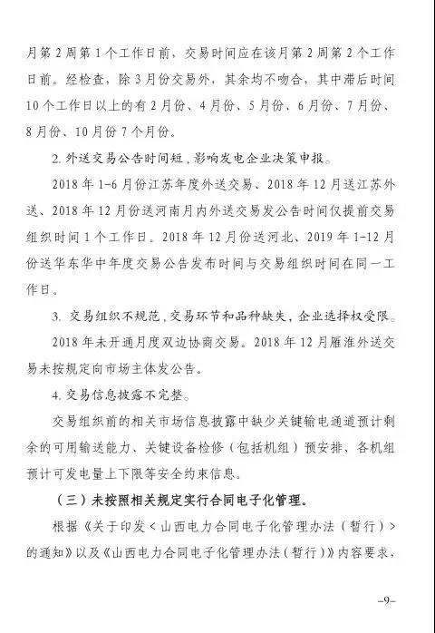 針對發(fā)現(xiàn)的問題,報告提出監(jiān)管意見:山西省電力公司和山西電力交易中心有限公司于9月1日前啟動預掛牌月平衡機制;9月30日前,山西電力交易中心將全面實現(xiàn)合同電子化管理等。