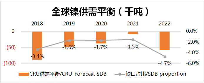 在新能源汽車增長的拉動下,三元動力電池用量迅猛增長,從而帶動了鎳資源的需求大爆發(fā),英國商品研究機構(gòu)(CRU)推算2017-2019年累計缺口為12.5萬金屬噸,到2025年新能源汽車將新增48萬噸以上鎳金屬的需求,供需缺口將進一步拉大,由此引發(fā)全球鎳資源告急。