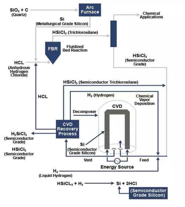 Hemlock Semiconductor(HSC)是一家致力于為電子和太陽能行業(yè)提供高純度多晶硅的可靠供應商。Hemlock的工藝從天然高純度石英巖開始,它被加工成硅基化學品三氯氫硅。使用化學氣相沉積反應器技術工藝,將三氯氫硅轉(zhuǎn)化為純度高達99.999999999%的高純度多晶硅。