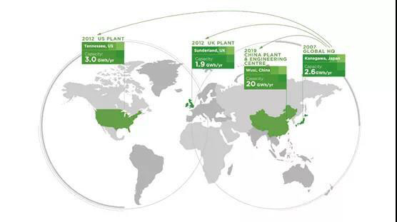 遠(yuǎn)景AESC目前在日本、美國、英國擁有三大電池工廠,總產(chǎn)能達(dá)7.5GWh。2018年10月,遠(yuǎn)景AESC宣布將在無錫江陰臨港開發(fā)區(qū)新能源產(chǎn)業(yè)園建設(shè)新廠,規(guī)劃產(chǎn)能20GWh。