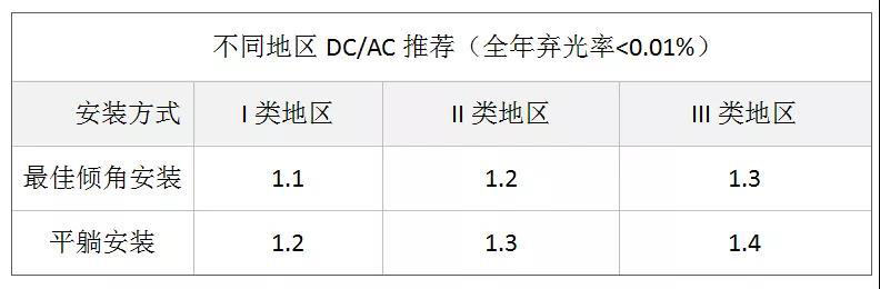 ▲不同地區(qū)不同安裝方式容配比推薦表