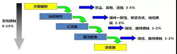 ▲光伏系統(tǒng)各環(huán)節(jié)中損耗