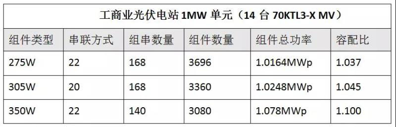 ▲1MW單元工商業(yè)電站不同類型組件配置表