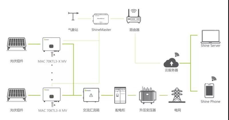 ▲中大型工商業(yè)光伏電站解決方案系統(tǒng)圖